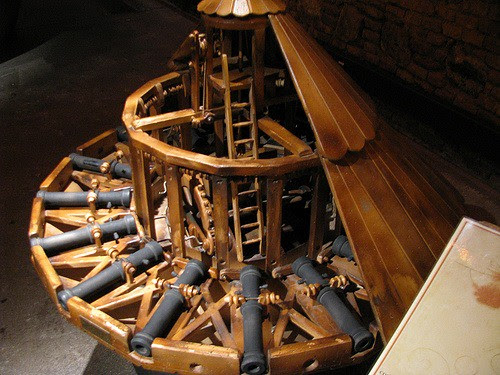Yang ini mungkin adalah salah satu dari proyek Da Vinci yang paling dikenal. Idenya untuk membuat panik dan kehancuran pada pasukan musuh dituangkannya dalam kendaraan perang mirip kura-kura ini.