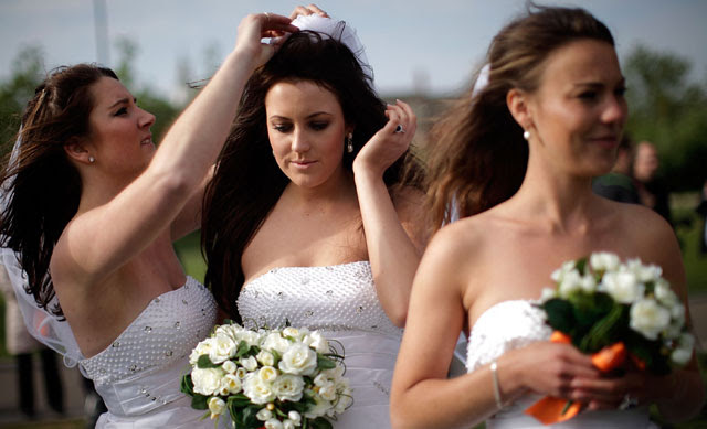 Para kontestan perempuan juga mengenakan gaun pernikahan ala Kate Middleton. Getty Images